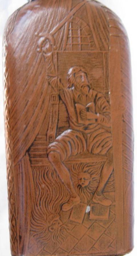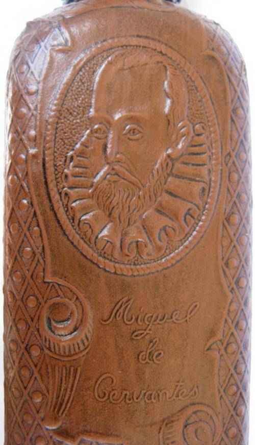 MIGUEL DE CERVANTES COVERED EMPTY BOTTLE with WOODEN TOP