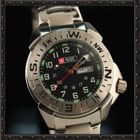 MILITARY ROYALE - SILVER U-BOAT ARMY - GMT WATCH