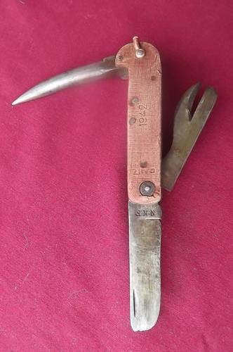 Military WW2 Marlin Spike Pocket Knife  1942  used in the Navy - possibly English -  NKF is printed on the knife . Still in good condition.