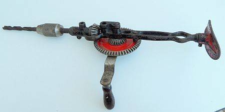 MILLER FALLS 2 SPEED BREAST PLATE HAND DRILL NO 118 CA 1940S MADE GREENFIELD,MASS.USA WORKING