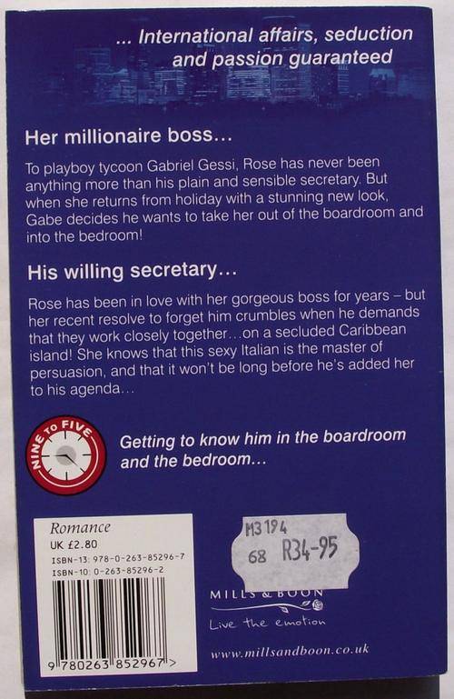 Mills & Boon: THE ITALIAN BOSS'S SECRET MISTRESS by Cathy Williams (V/good cond.)