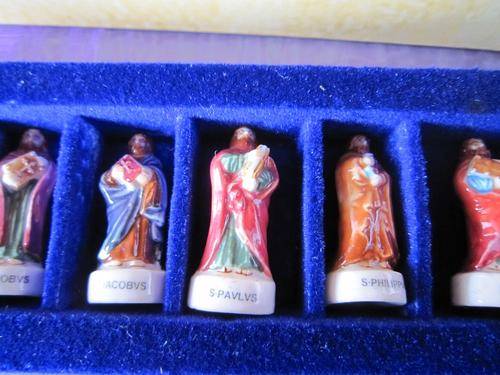 Tiny set of the disciples, but unfortunately 2 r missing, but I had them in a printers tray and they were lovely. They r made of a good quality porcelain and are hand painted, makers are Arguydal and each figure is approx 3.5cms high.
