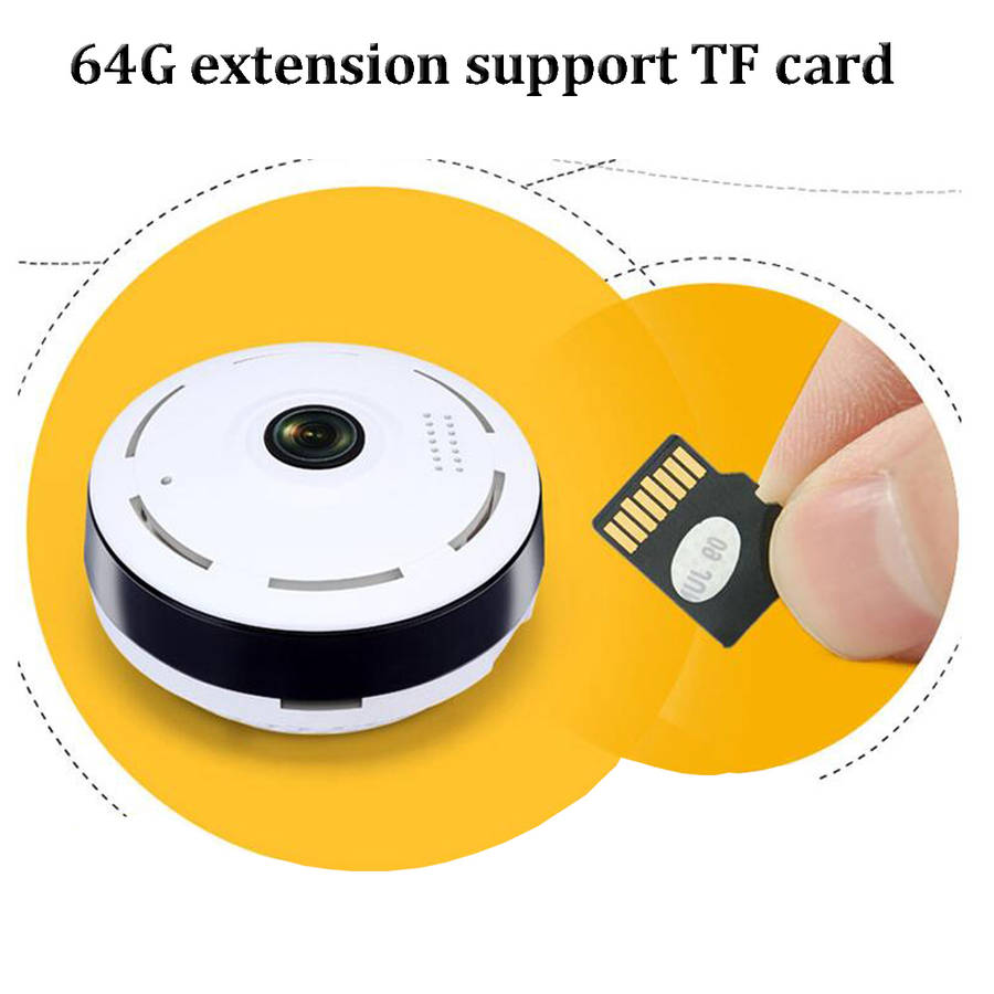 Specification : Name: Mini 360 Degree Wireless IP Fisheye Camera Two Way Audio 1080P HD wifi Panoramic Model: 580087 Sensor: 1/4″ Progressive Scan CMOS Lens: 360° fisheye lens Angle: Horizontal 360° Video Compression Standard: H.264 Audio Compression Standard: G.711 Video Frame Rate: Max 25 fps Aduio Input / Output: Input Built in Microphone; Output Built in horn IR Night Vision: IR LEDs,IR distance 15m, (Optional IR-CUT automatic switching) Focus Mode: Manaul Local Storage: TF/SD Card , Max support 64GB (Not Included) Multi Protocols: TCP/UDP, IP, SMTP, FTP, DHCP, UPNP, NTP Wifi: IEEE 802.11b/g/n Image Rotation: Mirror / inverted Video monitor: Support Motion Detection: Support Mobile phone APP: V380 Alarm Actions: App push the snapshot User Setting: Administrator, visitors System Interface: 1pc Micro USB interface , 1pc TF(Micro SD) card interface Power: 5V 2A Power Consumption: <5W Operating Temperature: 0C~60C Material: ABS Plastic, Indoor Use Size: Diameter 65mm Net Weight: 80g Product Description: Mini 360 Degree Wireless IP Fisheye Camera Two Way Audio 1080P HD wifi Panoramic