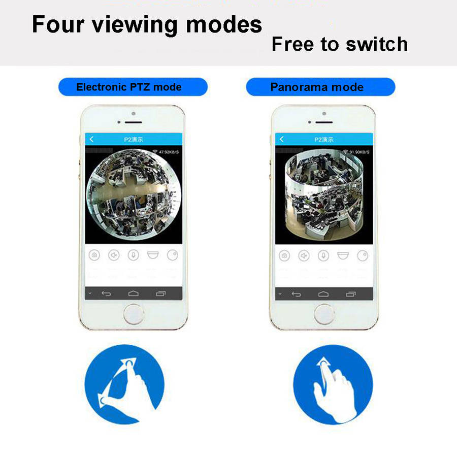 Features : * 360° Panoramic fisheye lens,just install 1pcs VR Cam,you can view the whole room,equal to 5 or 4pcs normal cameras,and no dead corner * 3D View,just like 3D Movie,you can view the picture from different angle,it shows more real,clear * Two way audio,you can neet and talk each other,Pick-up built-in * Internal WIFI antenna,just power on VR camera and and Wifi Router,it will connect automaticlly,can view by mobile,if you haven't Wifi NVR/Router,just connect through network cable,also can view on TV/Monitor * 1080P HD,The resolution is 200Megapixel Circular image,The video and picture is more clear and smooth than 720P or analog camera * Support all kinds of smart device remote view:iOS/Android/PC * Better Day Night Vision,it will swich from day to night automatically * Support SD Card storage,Maximum support 64G
