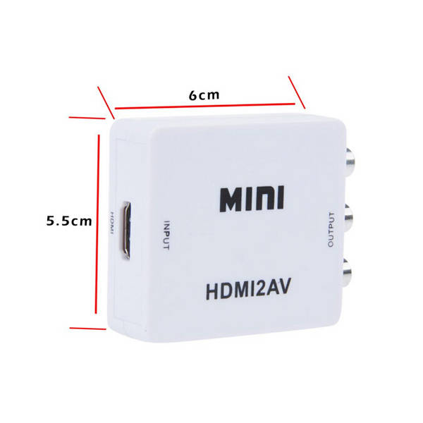 Description: This MINI HDMI to AV signal adapter which will change HDM video signal or audio signal to AV (CVBS) composite video signal and the FL / FR stereo audio signals, while support DVI system sideline signals. To help users change the high quality of the HDMI video signal into normal CVBS signal (standard-definition 480i, 576i,). So that can play on TV, VHS VCR, DVD recorders, etc and support NTSC and PAL two TV format. Features: No need to install drivers, portable, flexible, plug and play. Support NTSC and PAL two standard TV formats output. Compatible HDMI1.3 Specification: Input Port: 1 x HDMI Output Port: 1 x RCA (Yellow, White, Red) HDMI Input Resolution: 640x480@60Hz, 800x600@60Hz, 1024x768@60Hz, 1280x720@60Hz, 1280x1024@60Hz, 1360x768@60Hz, 1600x1200@60Hz, 1920x1080@60Hz, 480i/60Hz, 480p/60Hz, 576i/60Hz, 576p/60Hz, 720p50/60Hz, 1080i50/60Hz, 1080p50/60Hz. CVBS Output: PAL, NTSC_M, (NTSC_J) Size (L x W x H): Approx. 66 x 55 x 20cm / 2.6 x 2.16 x 0.79 inch Weight: 40g Package Includes: 1x HDMI to AV Signal Adapter 1x USB Cable