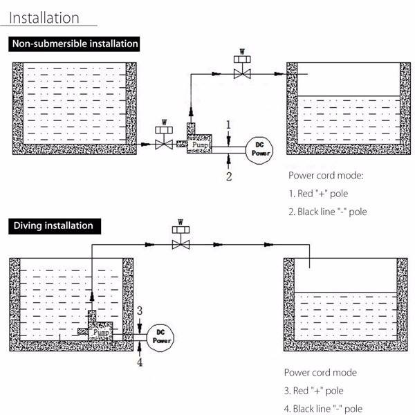 Note: 1.Do not take the wrong pump positive and negative. 2.Prohibit not through the power converter will be connected directly to the 220V power supply pump. 3.Is strictly prohibited for strong acidity, alkali and other damage to the pump medium. 4.The pump is suitable for medium temperature 1 a -60 a.