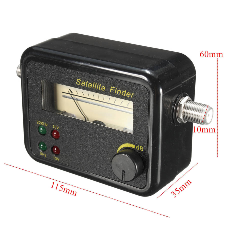 -GSF9504 Satellite Finder Signal Meter, it designed with SMT technology, its superior sensitivity is capable to indicate signal from 0.2dB to 2300MHz. -It is operated by LNB power. It displays signal strength, according to dish position, with an easy-to-read analog needle, allowing you to make necessary adjustments without having to yell back and forth from the window. The Satellite Finder will align your satellite dish whether you use Dish ---Network, Direct TV, or any other type of satellite TV.