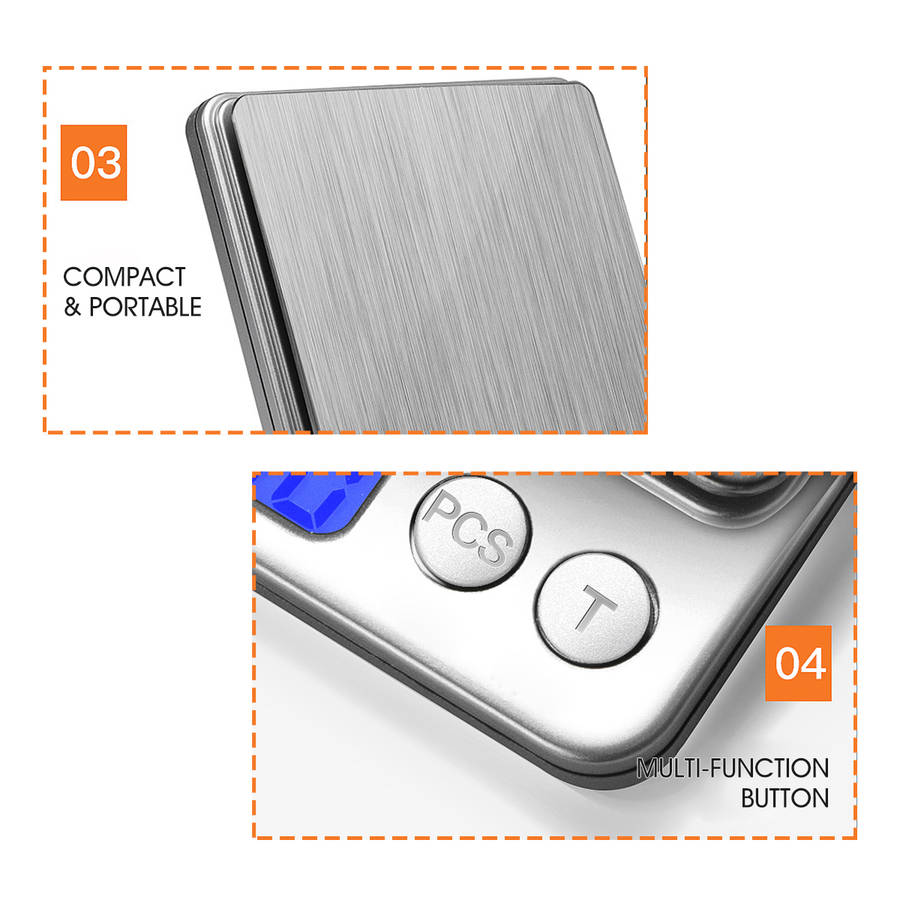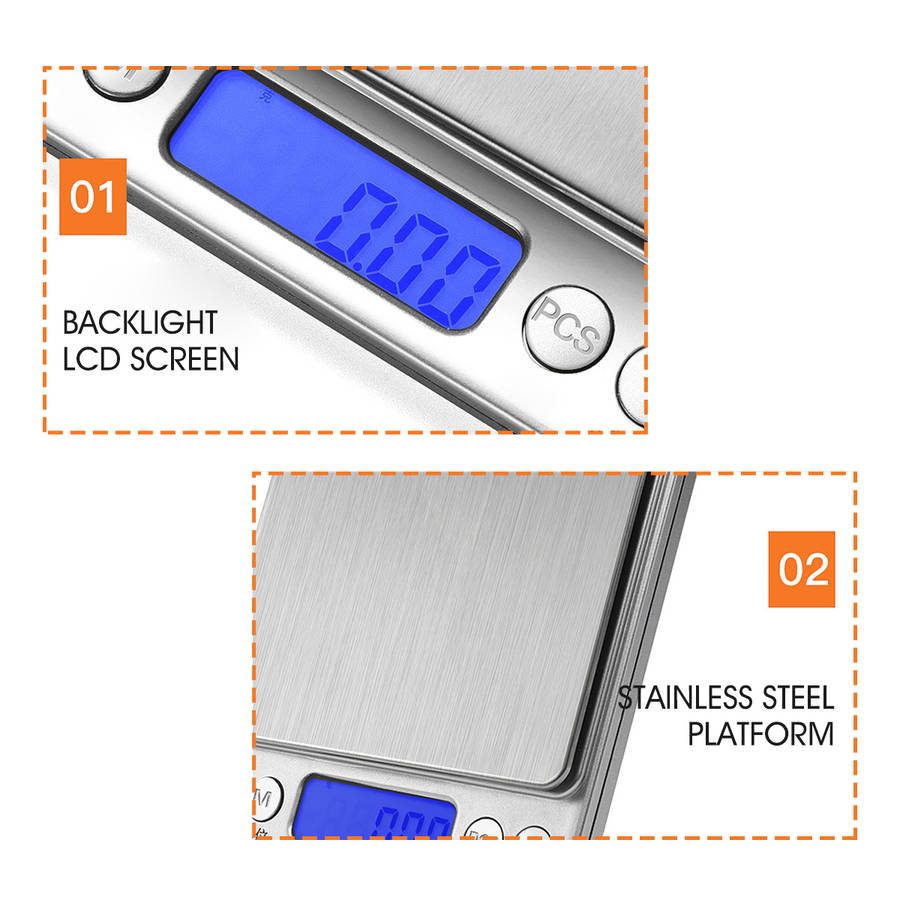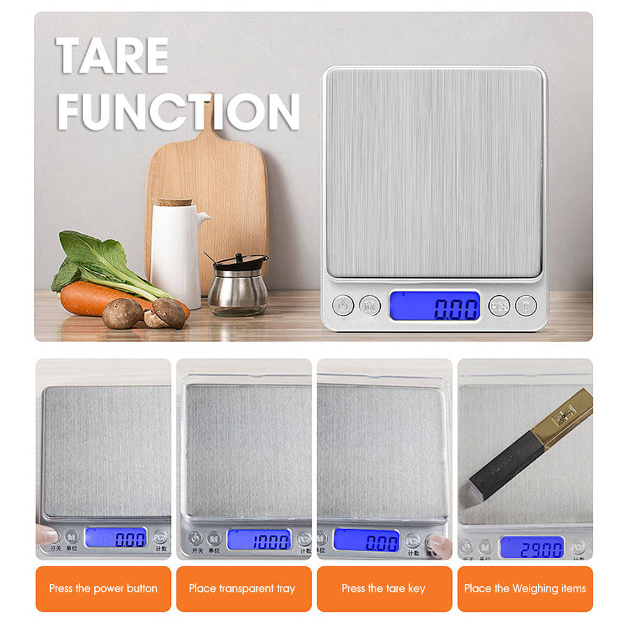 Description: Mini Digital LCD Electronic Scale Kitchen Cooking Balance Food Weight Scale Specification: Color: Silver Material: Stainless Steel+ABS Dimension: 10.5×12.5×2cm / 4.1×4.9×0.8' Power supply: 2xAAA battery (NOT included) weighing units: g, gn, ct, oz, ozt, dwt Automatic shutdown time: 180s Operating temperature: 0~40°C (32~104°F) Type:(Capacity/Resolution) A - 1000g/0.1g B - 2000g/0.1g C - 3000g/0.1g D - 500g/0.01g Feature: - Large Weighing Range & Refined Accuracy: An ideal to measure jewelry, and cooking ingredients with high precision. - Stainless steel platform, anti-oil, anti-rust, easy to clean. - Blue LCD backlight display, help you read it clear even in the evening. - It can converts measurement units in seconds between g, gn, ct, oz, ozt, dwt. - Tare Function: Zero function helos you to measure different ingredients in a bowl. - PCS counting function: can carry out quantity test on similar items. - Comes with 2 trays for easy weighing and prevent items from scattering. - Compact and portable design, does not take up too much desktop space. Package Included: 1 x Electronic Scale 2 x Plastic Tray 1 x User Manual More Details: ![]() ![]() ![]() ![]() ![]() ![]() ![]() ![]() ![]() ![]()  |