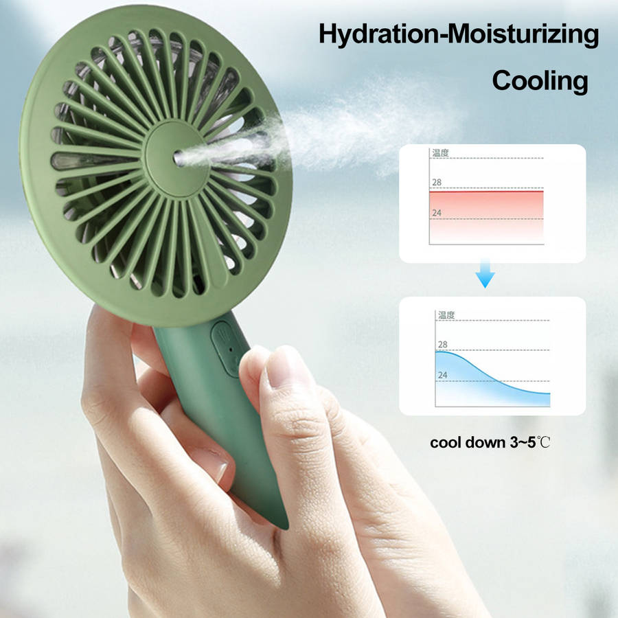 1.This hand-held fan has a spray spray, hydration-moisturizing/cooling.