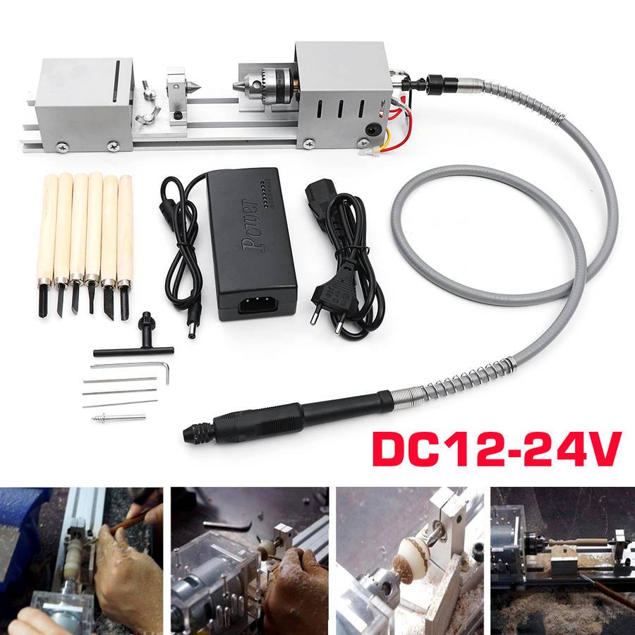 Mini Lathe Beads Machine Woodwork DIY Lathe Standard Set with Power DC12-24V carving cutter