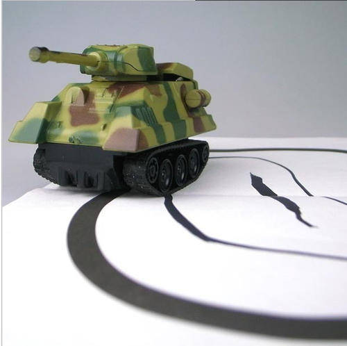 The product is a funny little tank which has a mind of its own! Only to draw a black, 1/4" line on a white piece of paper surface, the built-in optical sensor on the bottom of the tank can read the drawn line and will follow wherever the line leads. It is really a wonderful present for your children.