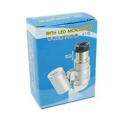 Quick Overview Mini microscope features 45 times magnifier, long life LED light, fashionable design, it can be used in the identify the jewelry, diamond, textile fabric analysis, electronic industry, bank to identify the currency, printing industry, agriculture, etc. White LED light can be used for a long-life.