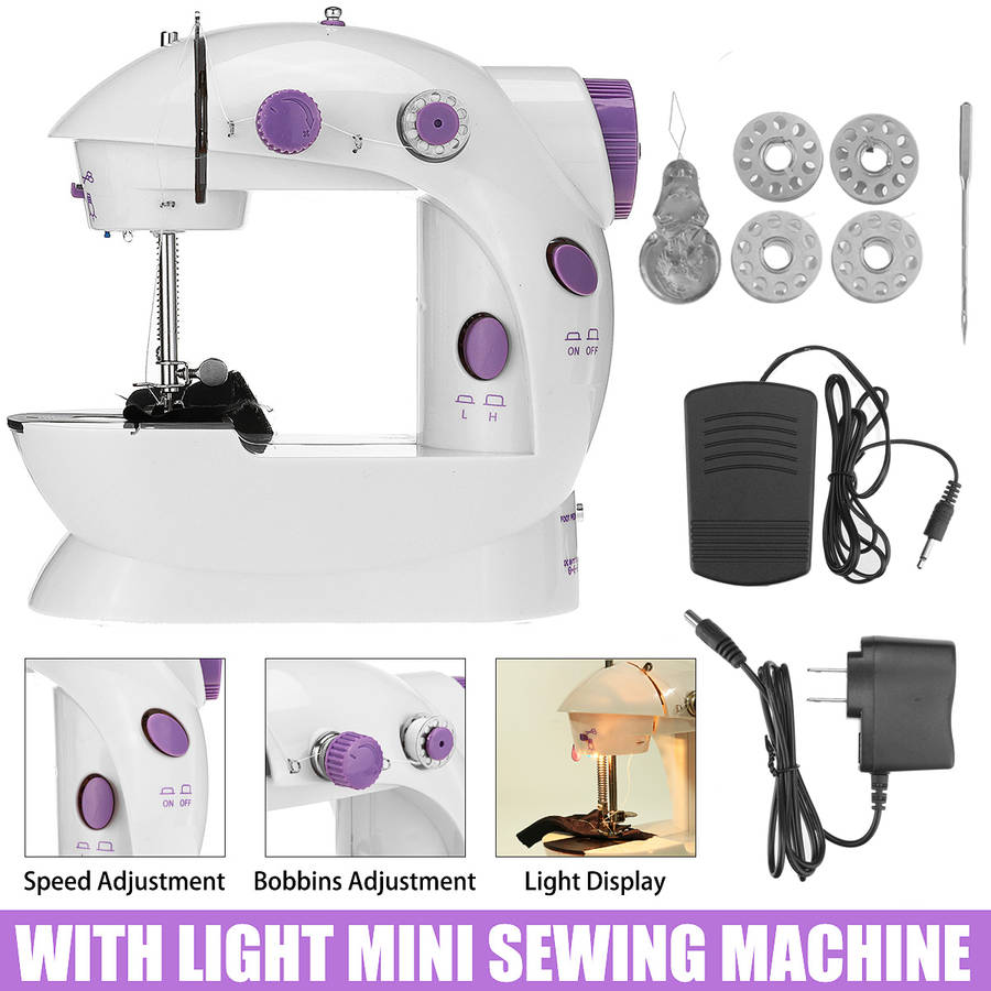 Mini Portable Electric Sewing Machine Stitch Sew Needlework Cordless Clothes Fabrics Sewing Machine W/ Light Specification: Type: Mini Sewing Machine Drive Form: Electric Voltage: 100 - 240V, 50 - 60Hz Power supply: household charger or 4 x AA battery ( not included ) Material: Plastic,Stainless Steel Use: Sewing Machine Fitment: For Home Quantity: 1 Set Features: 1: Portable sewing machinesfeatuer 2: mini sewing machinefeatuer 3: Sewing Machine Manualfeature 4: Sewing Machine Portablefeature 5: Domestic Sewing Machine Package Included: 1 x Mini Sewing Machine 6 x Bobbins 1 x Power Supply 1 x Pedal 1 x Spare Needle 1 x Needle Threader More Details: