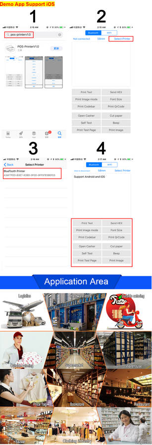 Compatible for Android/iOS/Windows OS devices. Please download relative APP / driver on your device, and connect it with the printer via BT 4.0 & 3.0, USB cable or serial port line.