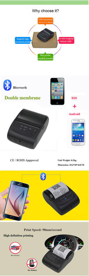 Print 58mm wide thermal paper, max. printing width 40mm, with 100km reliability printing life.