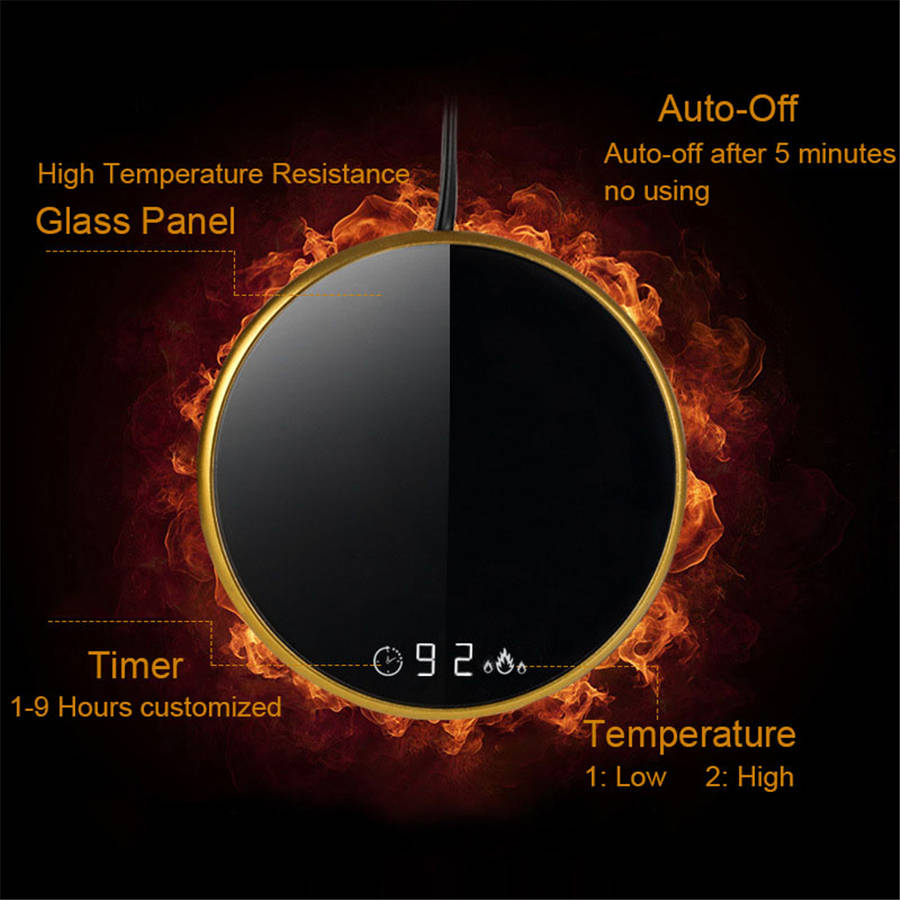 Compact Design: The mug warmer is gathered with aluminum alloy, waterproof easy-to-clean conductive glass surface and extended plug for different scenarios.