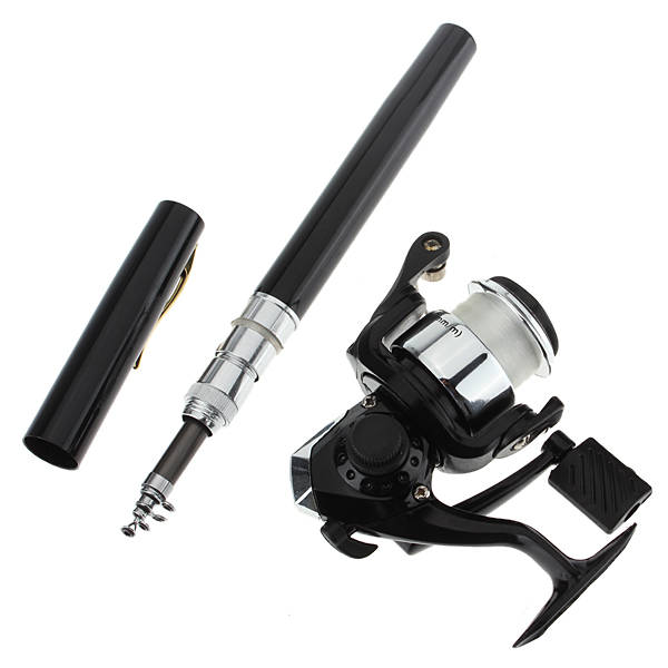 Telescopic saltwater 39inch Fishing Rod Blue Pen Pole Reel & Nylon Line set