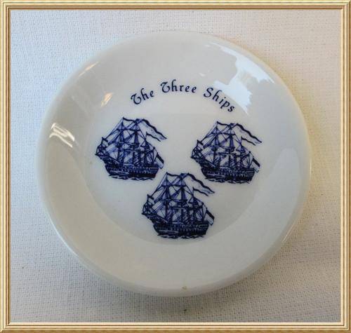 A lovely mini porcelain plate " The Three Ships ", in good condition, marked to back, 8 cm in diameter.
