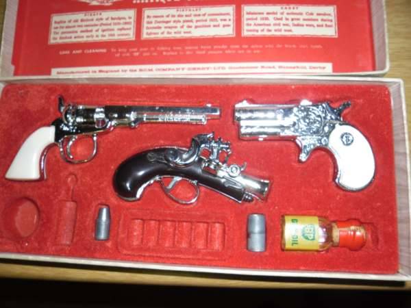 MINIATURE ANTIQUE CLAP GUNS IN ORIGINAL BOX