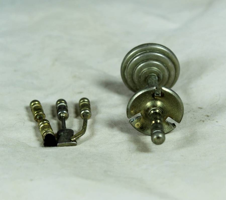 A stunning miniature bronze cleaning kit. It measures 5.5cm high.