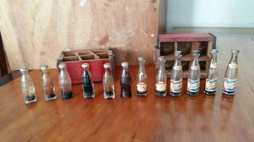 MINIATURE Vintage Soda Case and 12 mini Soda Pop bottles