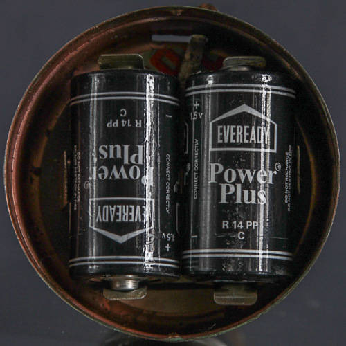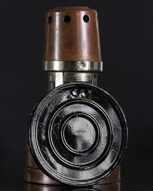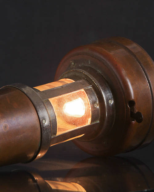 MINIATURE COPPER, CHROME AND TIN LANTERN WITH GLASS LAMP