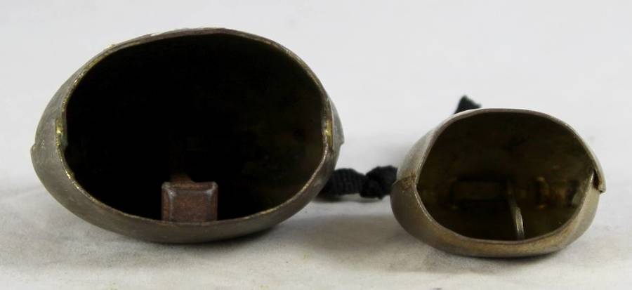 An absolutely beautiful pair of miniature cow bells. They are in good condition and will make a wonderful addition to your collection. The bells measure 6cm and 4cm high.