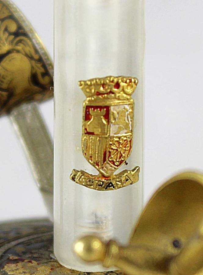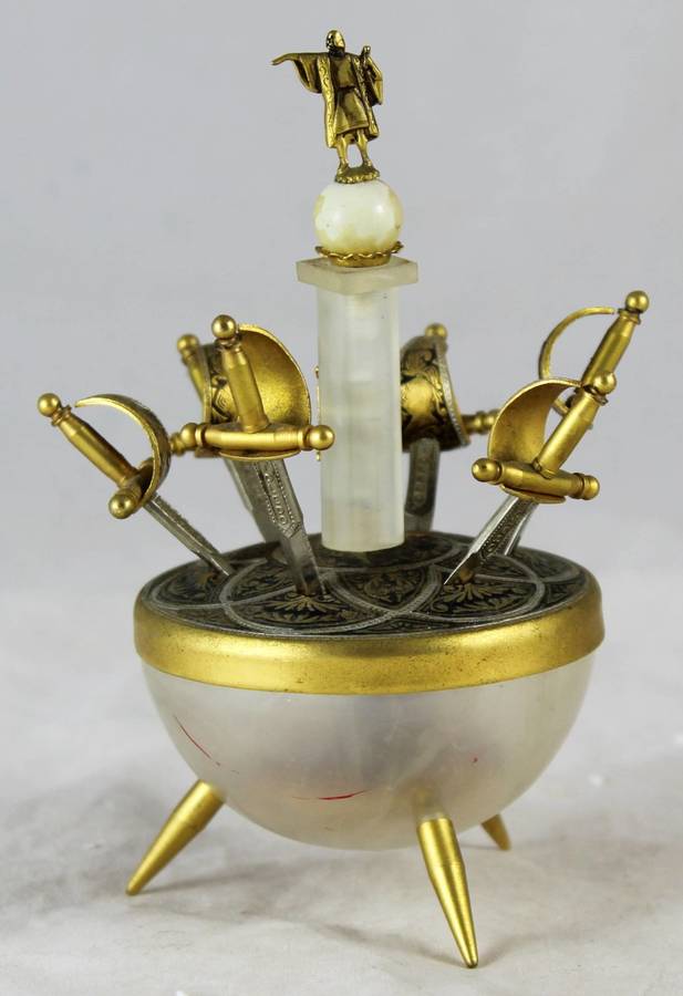 An absolutely gorgeous miniature fondue set with Toledo swords. It is in good condition and will make a splendid addition to your collection. The set measures 12cm high.