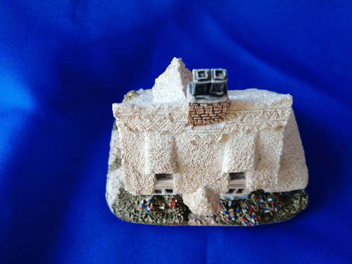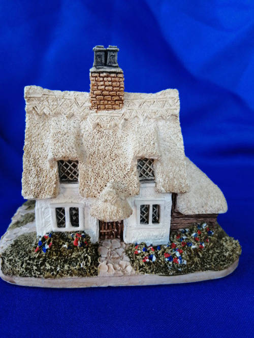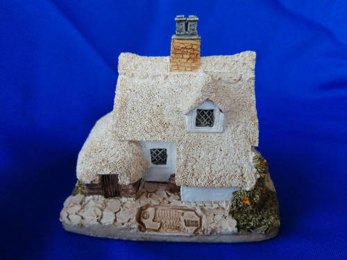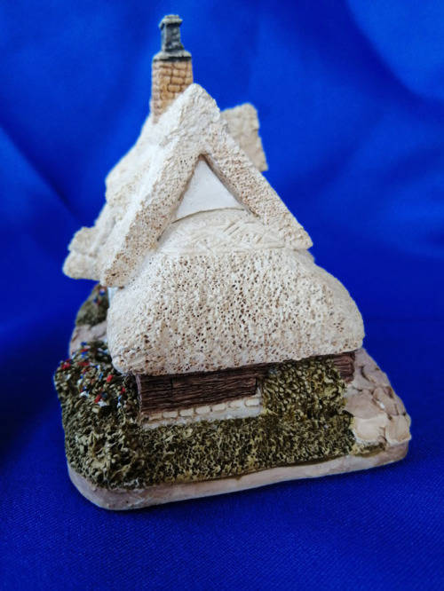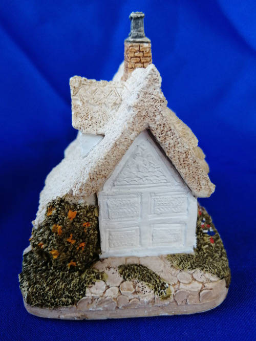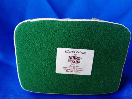 Hand crafted and hand painted this retired Lilliput Lane model of Clare Cottage is part of the Suffolk collection. Clare Cottage was introduced in February of 1985 and retired in July of 1993.