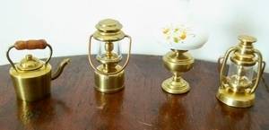 4 x miniature solid brass ornaments.  These are a good weight and not flimsy.  Good condition and each in a plastic bag.