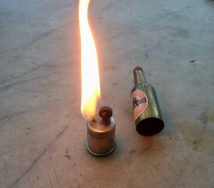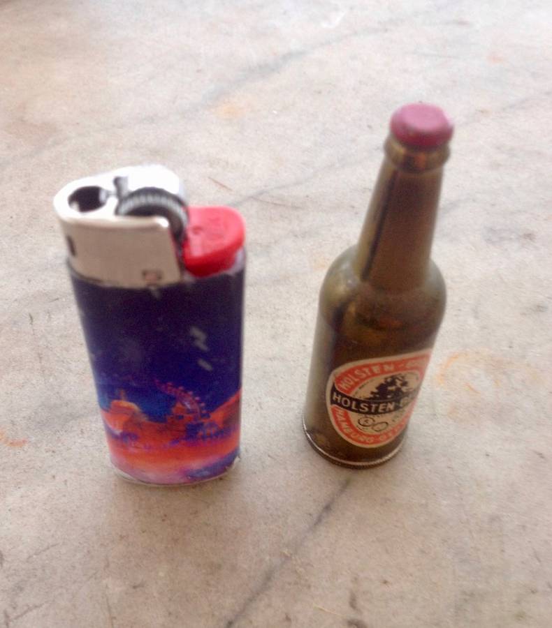 miniature vintage holstens beer bottle wick and flint lighter , made in Germany