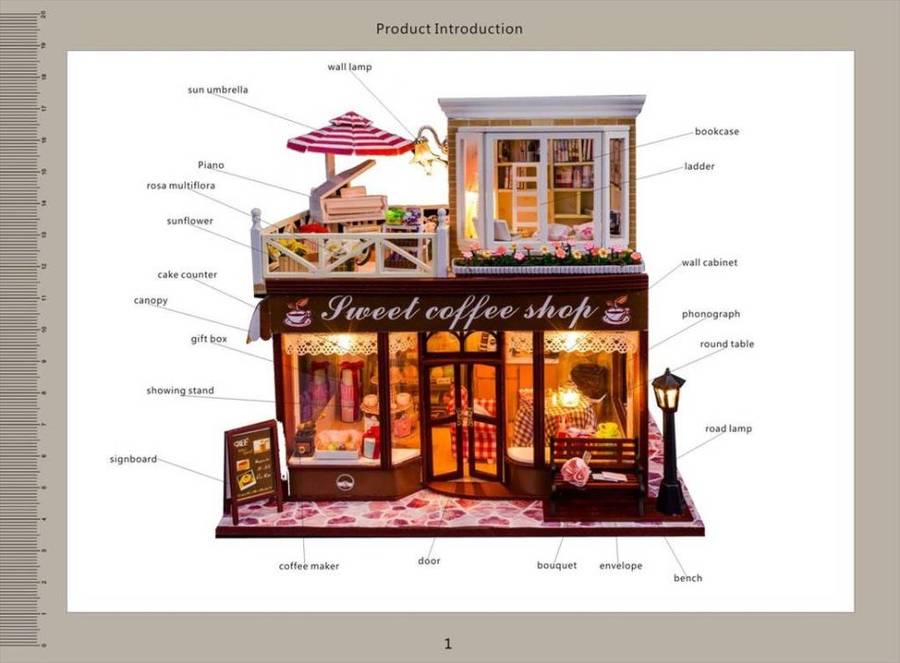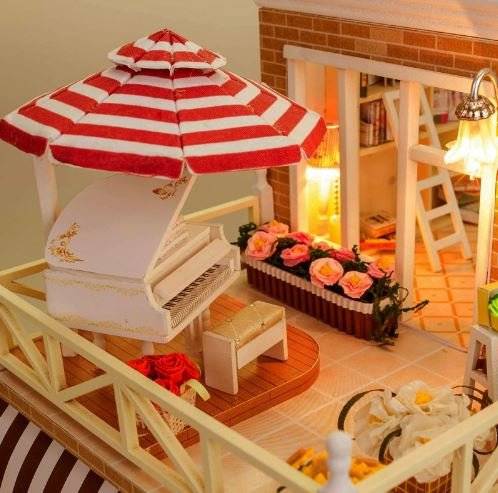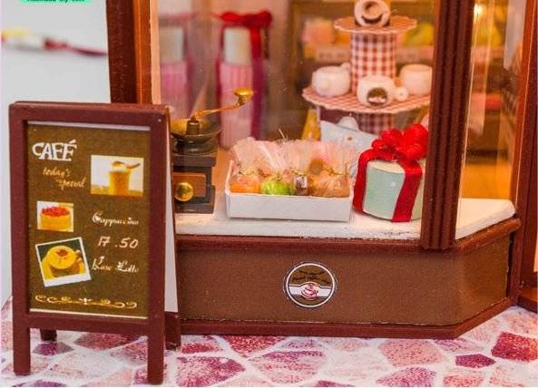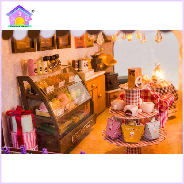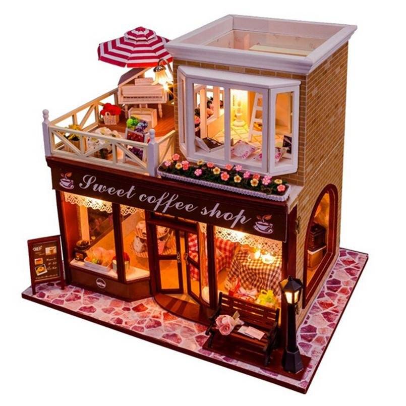 Miniature Wooden DIY Doll House with Furniture (Coffee Shop)