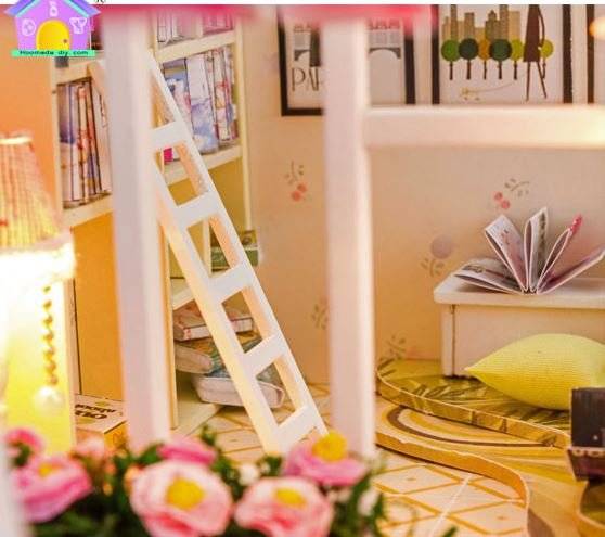 The material of the dollhouse is wood like real house, such as the cabinet is make of wood, the window curtains are make of cloth, the books are make of paper. You will have much fun assembling each scene