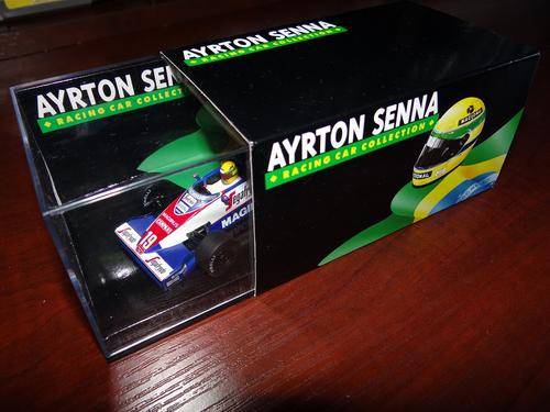 1:43 Minichamps F1 model as driven by Ayrton Senna for Toleman in 1984. Part of the Ayrton Senna Collection. Comes with protective plastic cover.