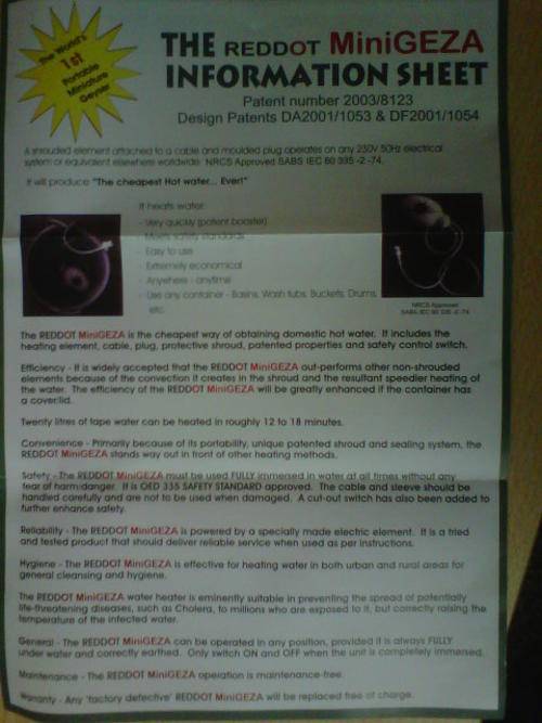If you dont have a geyser but have electricity this can be used for hot water needs.