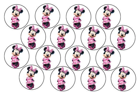1 x A4 sheet with 16 matching Minnie Mouse cupcake circles/toppers - (print will look like the picture below, there are 16 cupcake circles per sheet) - all pictures and or cupcake pictures are printed on wafer/ rice paper