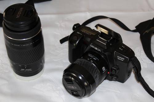 Minolta DYNAX 303si with Film Camera 0.38m / 1.3ft Macro Lens , extra AF75-300mm Lens with carry bag