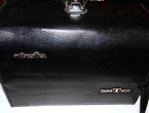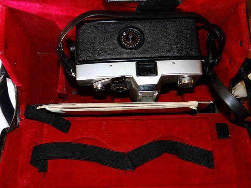 in original leather carry case. Mirror locks up on slower speeds, but clears when winding on. Battery compartment clean. Fast f2.8 Portrait Lens in good clean condition, f-stops and focussing work smoothly. Postage R50.