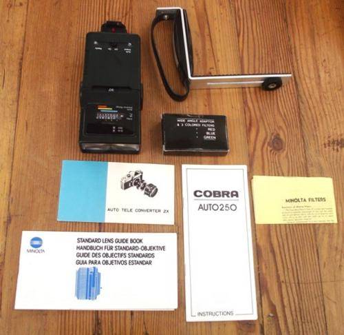 LEATHER CASE IS VERY GOOD. THERE IS A CAMERA BAG WHICH ALSO HOLDS ACCESSORIES SUCH AS COLOUR FILTERS, A GRIP AND A COBRA AUTO THYRISTOR. THERE ARE INSTRUCTIONS AS WELL