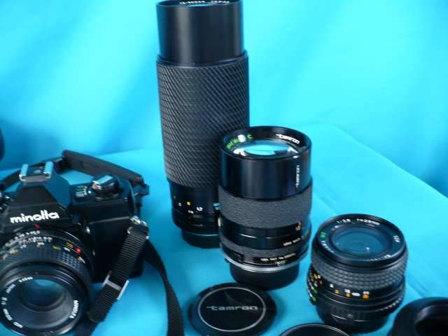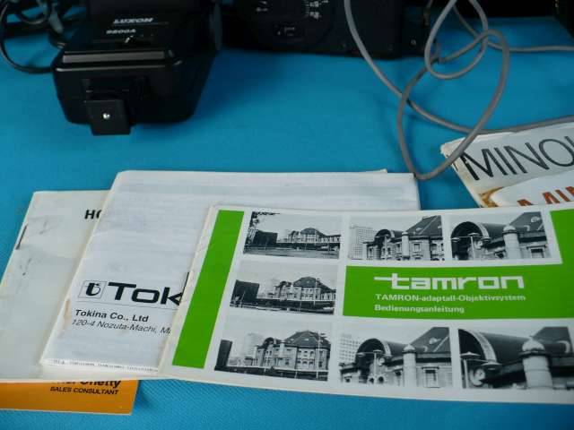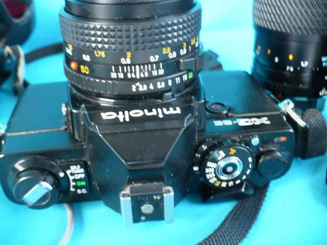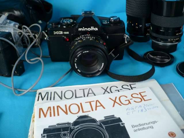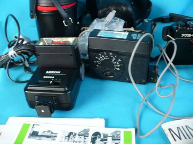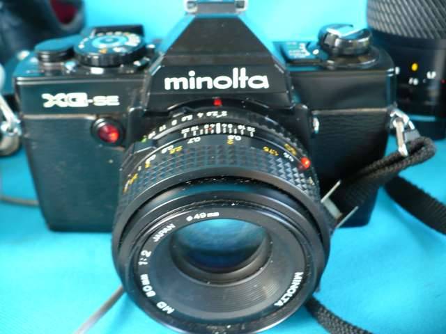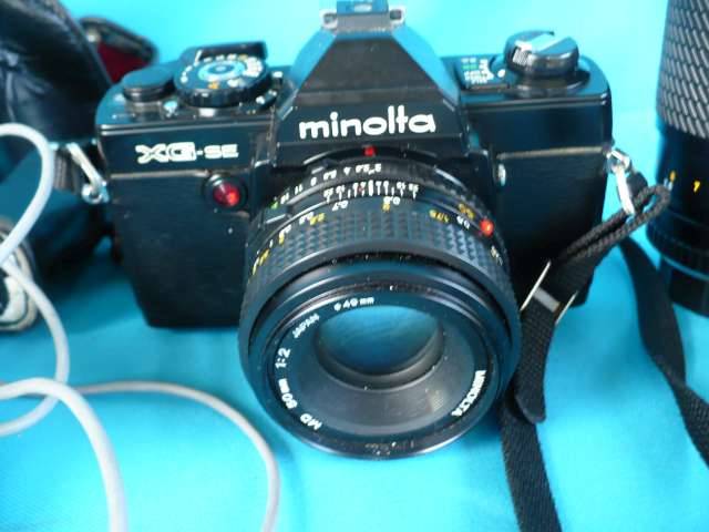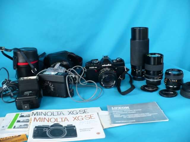 MINOLTA XG SE FILM CAMERA + LENSES + 2 FLASHES ALL WITH INSTRUCTION BOOKS
