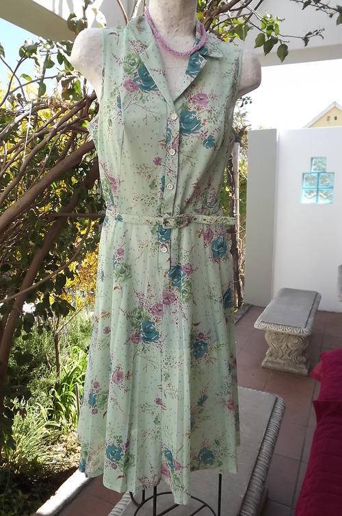 Mint Green Floral Vintage Rayon/Nylon Dress with Permanent Pleated Skirt - size 12/36