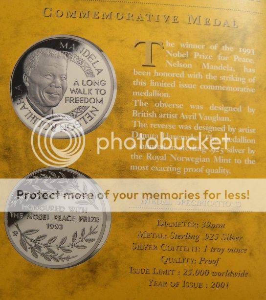 Mint of Norway : Nelson Mandela Commemorative 1 Troy Silver Medal