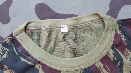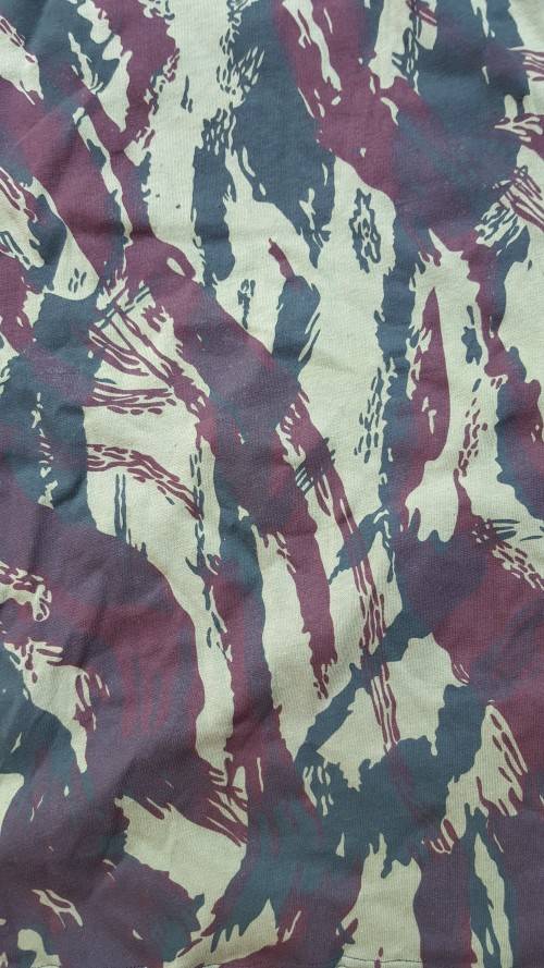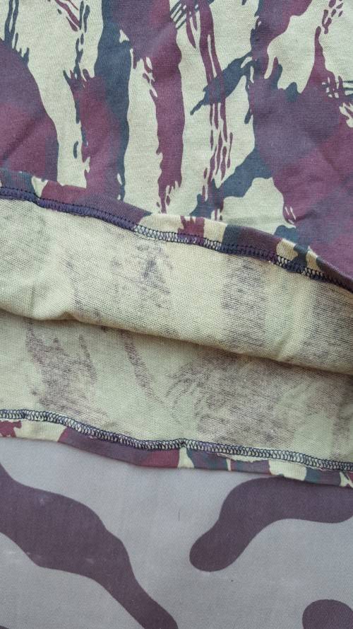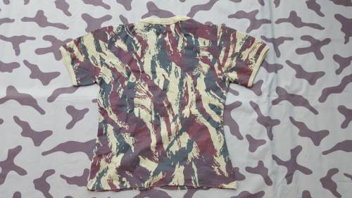 Here on auction we have a mint new and unused SADF era SA SF Recce "copy camo" Portuguese vertical lizard camo patt medium size tee-shirt - scarce item.
