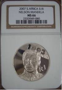 Mint State 66 Nelson Mandela Sterling Silver 2007 Protea Nobel Laurette Series