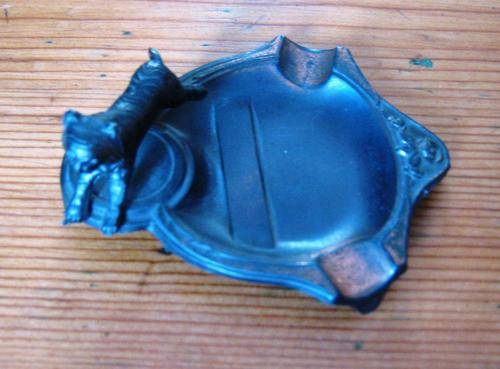 MINT UNUSED BRONZE ASHTRAY WITH JUMPING TIGER FIGURE FROM 1972