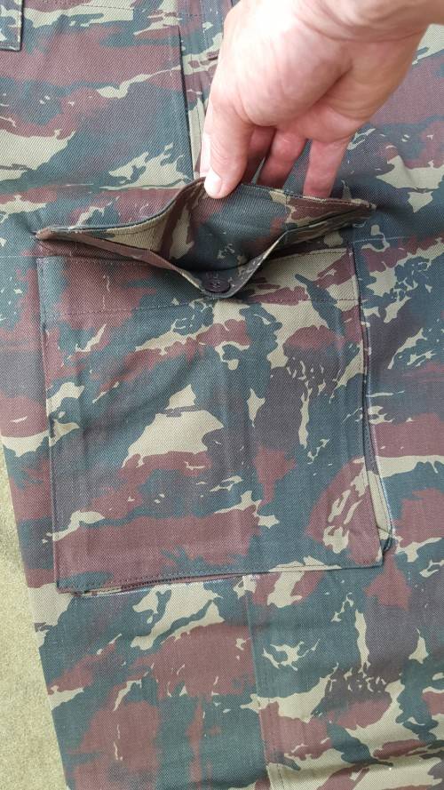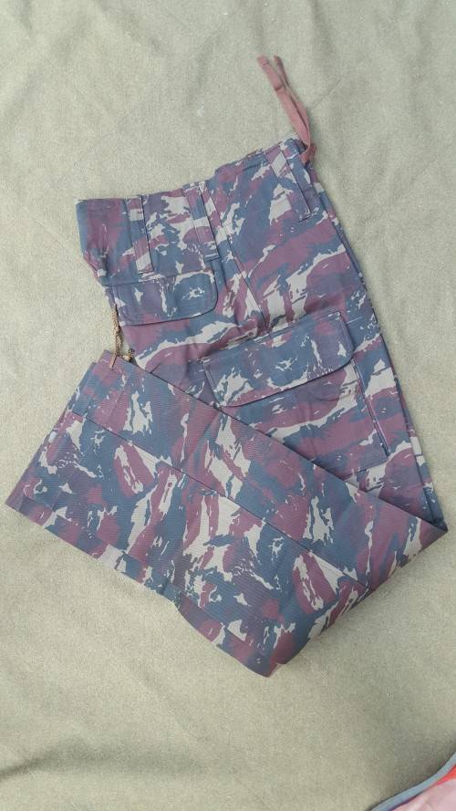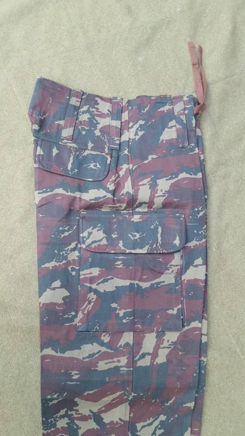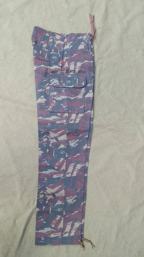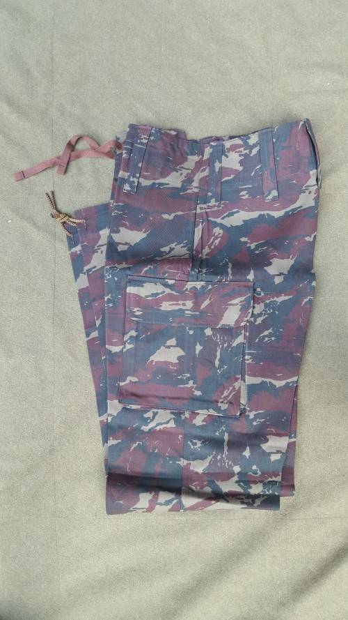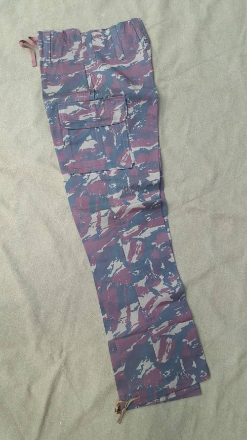 Here on auction we have a mint & unused off the shelf Med (waist 36) size Recce type "A" copy camo 1st patt wet season pair of trousers.