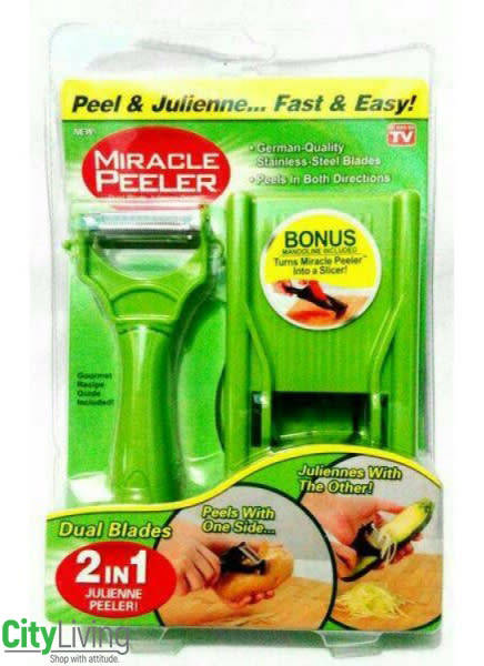 Miracle Peeler dual blades that allow you to peel in both directions, slicing your prep-time in half