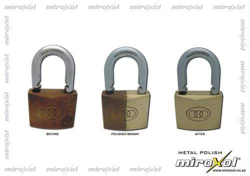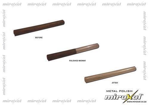Miroxol is a versatile metal polish that gently cleans and polishes all blank metal surfaces such as brass, silver, copper, aluminium, pweter, nickel, bronze, chrome, stainless steel etc. Used to clean and polish parts such as mag rims, exhaust pipes, fire arms, railings, gates, ornaments, door and window handles, bells etc. Special ingredients used in Miroxol helps leave a protective surface layer that offers some resistance to tarnish, rust and the other effects of weathering. Miroxol aslo boasts one of the longest lasting and most brilliant shine when copared to other products.