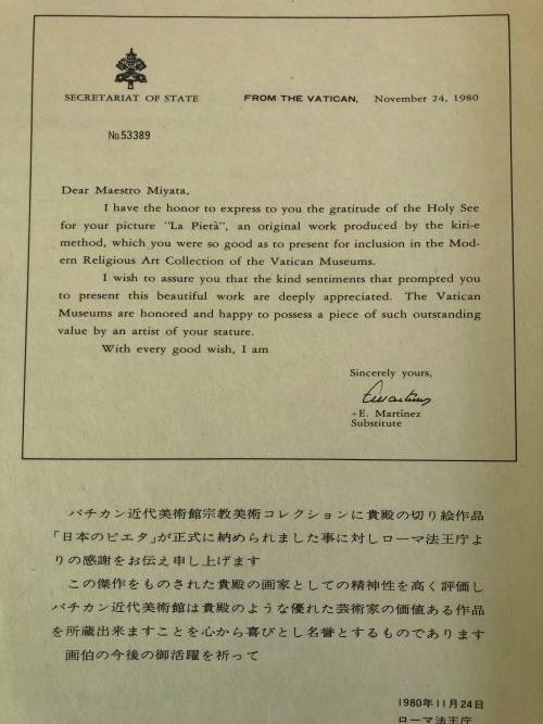 Miyata Masayuki ( ), was born in Tokyo in 1926. He is mainly known as a kiri-e (papercutting) artist. He was discovered by the famous writer Tanizaki Jun'ichiro. A few years before his death, in 1995, he was selected as the year's official artist for the United Nations. He made illustrations for modern publications of Japanese classic literature, including Oku no Hosomichi (The Narrow Road to Oku), The Tale of Genji, and The Tale of the Bamboo Cutter. Still, he also made woodblock prints that were mainly executed in the style of papercuttings. He is an artist that is much more known in the East than in the West.