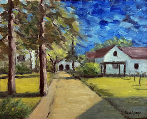 Description: Mission Station, Tweespruit. Oil on Masonite.